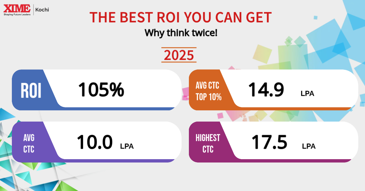XIME Kochi offers centralized placement services, providing students with opportunities across various industries. The institute has a strong track record of placements with competitive salary packages. XIME Kochi consistently offers the best RoI among all campuses.