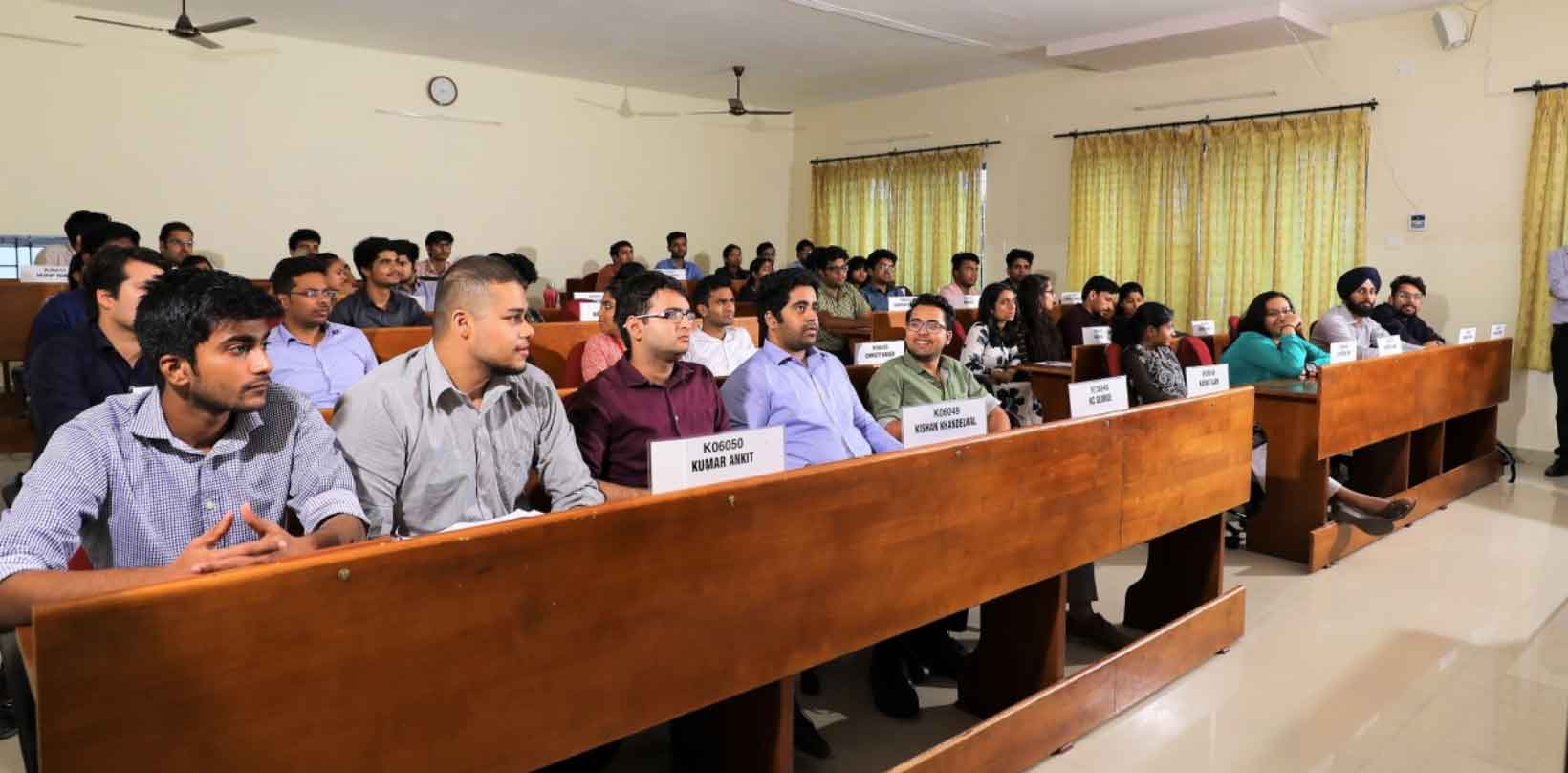 There are 6 classrooms with seating capacity ranging from 40 to 120. They are fully equipped with public address system and LCD projectors. Other than class rooms, the college has seminar halls, board rooms, placement room, MDP rooms and Auditorium. The State of the art Auditorium has a seating capacity of 500.